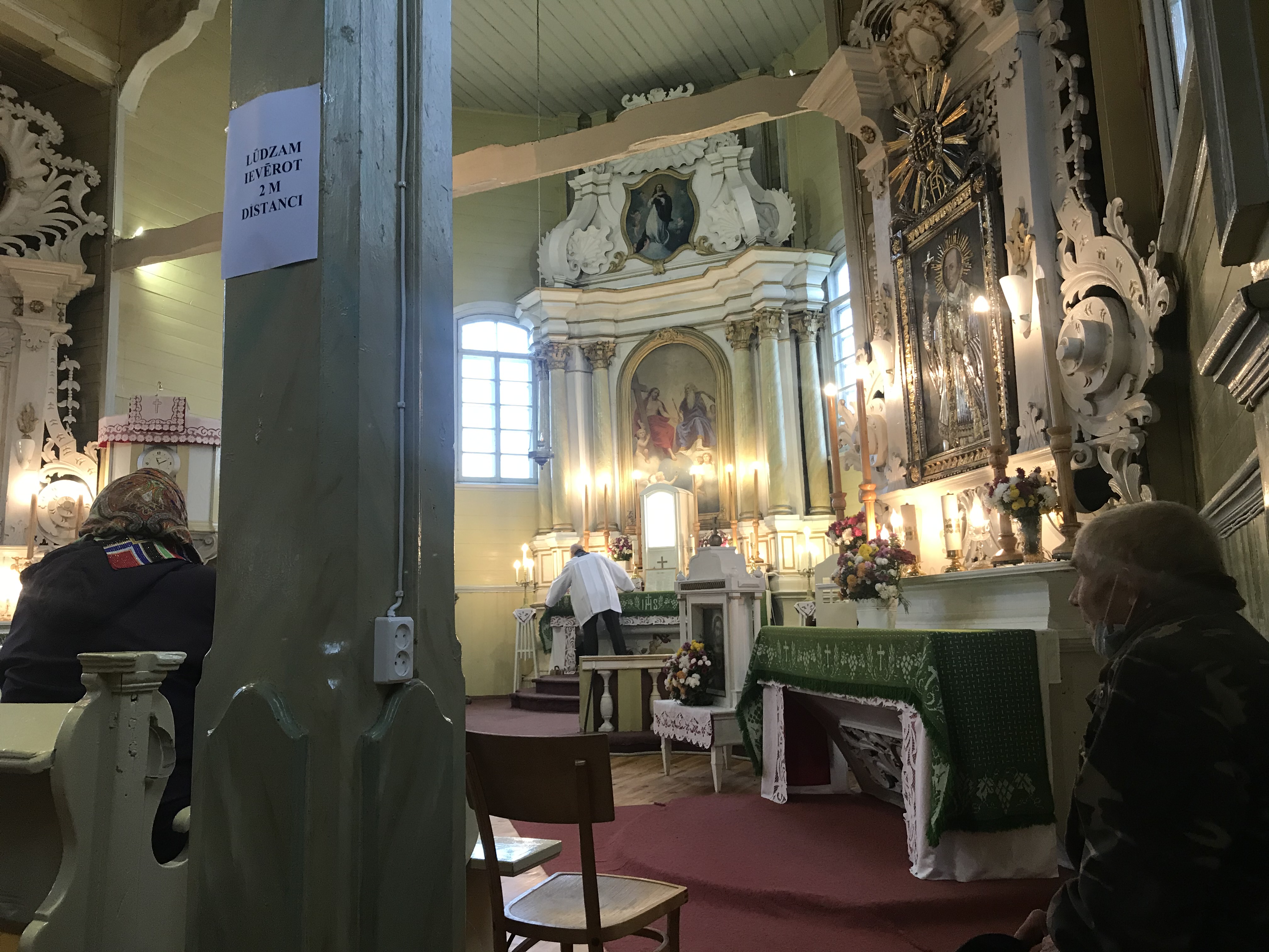 - Pušas baznīcā ievēro distanci.